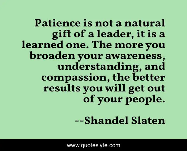 Patience is not a natural gift of a leader, it is a learned one. The more you broaden your awareness, understanding, and compassion, the better results you will get out of your people.