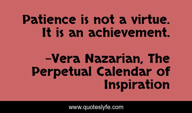 This page presents the quote "Patience is not a virtue. It is an achievement.". Author of this quote is Vera Nazarian, The Perpetual Calendar of Inspiration. This quote is about patience, virtue, achievement,.