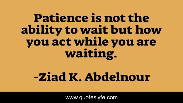 This page presents the quote "Patience is not the ability to wait but how you act while you are waiting.". Author of this quote is Ziad K. Abdelnour. .
