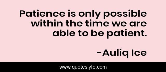 "Auliq Ice Quotes." Quoteslyfe.com, 2025. Fri. 05 Dec. 2025. <https://www.quoteslyfe.com/quote/Patience-is-only-possible-within-the-time-193107>.
