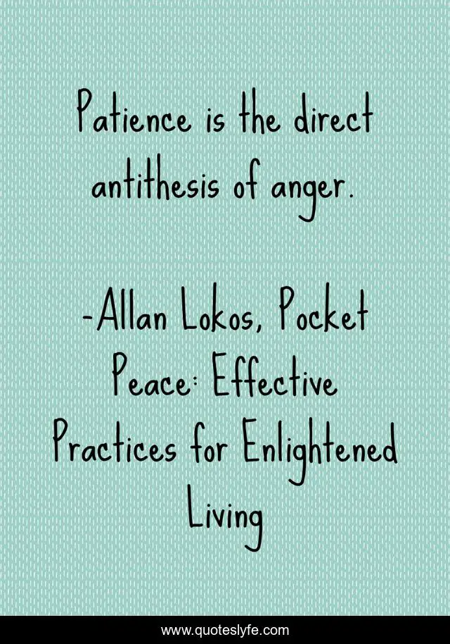"Allan Lokos, Pocket Peace: Effective Practices for Enlightened Living Quotes." Quoteslyfe.com, 2025. Fri. 05 Dec. 2025. <https://www.quoteslyfe.com/quote/Patience-is-the-direct-antithesis-of-anger-28571>.