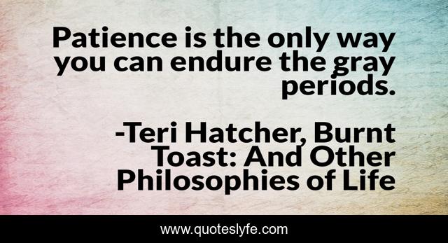 This page presents the quote "Patience is the only way you can endure the gray periods.". Author of this quote is Teri Hatcher, Burnt Toast: And Other Philosophies of Life. This quote is about actresses, enthusiasm, motivation, philosophy, inspirational,.