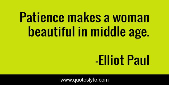 This page presents the quote "Patience makes a woman beautiful in middle age.". Author of this quote is Elliot Paul. .