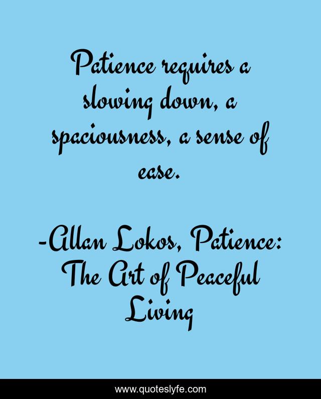 "Allan Lokos, Patience: The Art of Peaceful Living Quotes." Quoteslyfe.com, 2025. Mon. 15 Dec. 2025. <https://www.quoteslyfe.com/quote/Patience-requires-a-slowing-down-a-spaciousness-134970>.