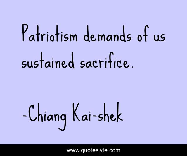 "Chiang Kai-shek Quotes." Quoteslyfe.com, 2025. Mon. 08 Dec. 2025. <https://www.quoteslyfe.com/quote/Patriotism-demands-of-us-sustained-sacrifice-313729>.