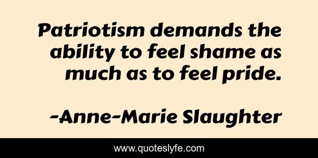 This page presents the quote "Patriotism demands the ability to feel shame as much as to feel pride.". Author of this quote is Anne-Marie Slaughter. This quote is about shame, pride, ability,.
