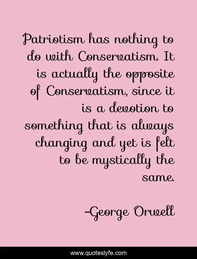 "George Orwell Quotes." Quoteslyfe.com, 2025. Sun. 07 Dec. 2025. <https://www.quoteslyfe.com/quote/Patriotism-has-nothing-to-do-with-Conservatism-240646>.