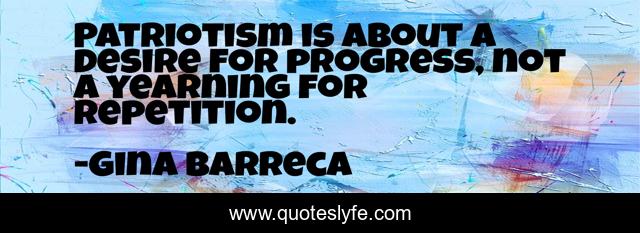 This page presents the quote "Patriotism is about a desire for progress, not a yearning for repetition.". Author of this quote is Gina Barreca. This quote is about patriotism, patriots, progress,.