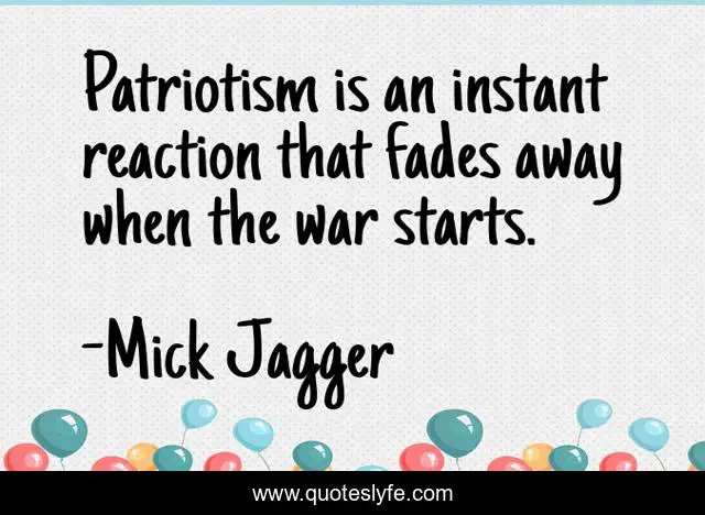 This page presents the quote "Patriotism is an instant reaction that fades away when the war starts.". Author of this quote is Mick Jagger. This quote is about reaction, away, war,.