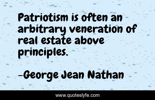 This page presents the quote "Patriotism is often an arbitrary veneration of real estate above principles.". Author of this quote is George Jean Nathan. This quote is about principles, real estate,.
