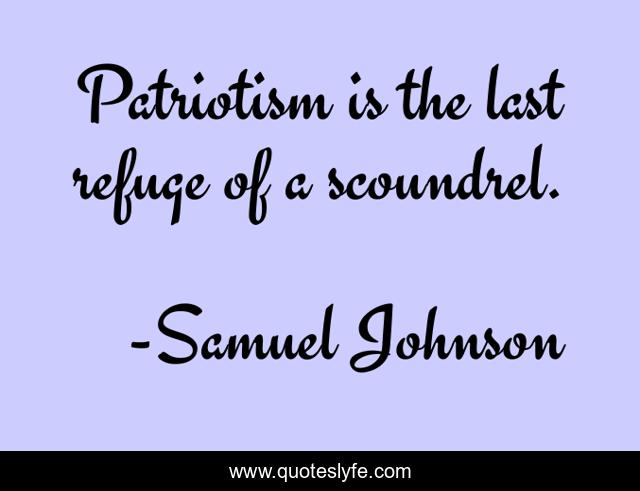 "Samuel Johnson Quotes." Quoteslyfe.com, 2025. Sat. 06 Dec. 2025. <https://www.quoteslyfe.com/quote/Patriotism-is-the-last-refuge-of-a-240639>.