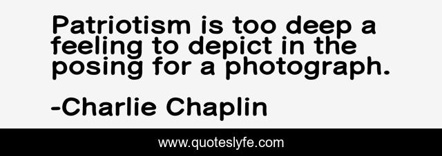 This page presents the quote "Patriotism is too deep a feeling to depict in the posing for a photograph.". Author of this quote is Charlie Chaplin. .