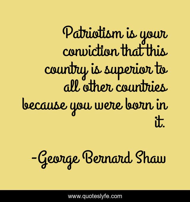 This page presents the quote "Patriotism is your conviction that this country is superior to all other countries because you were born in it.". Author of this quote is George Bernard Shaw. .