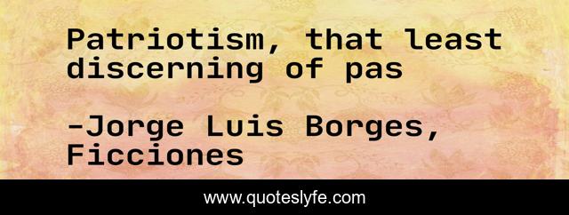 "Jorge Luis Borges, Ficciones Quotes." Quoteslyfe.com, 2025. Sat. 06 Dec. 2025. <https://www.quoteslyfe.com/quote/Patriotism-that-least-discerning-of-pas-240671>.