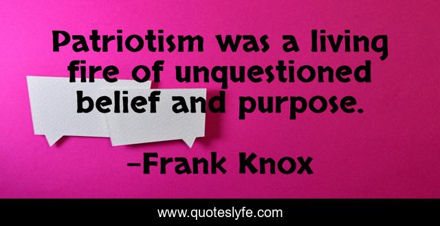 This page presents the quote "Patriotism was a living fire of unquestioned belief and purpose.". Author of this quote is Frank Knox. This quote is about fire, patriotism, purpose,.