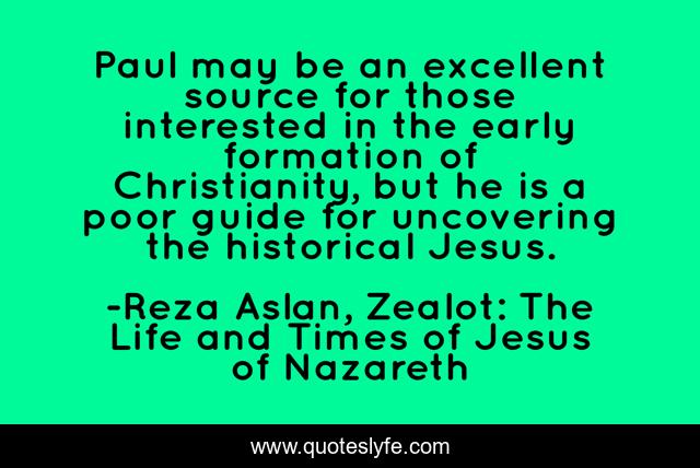 This page presents the quote "Paul may be an excellent source for those interested in the early formation of Christianity, but he is a poor guide for uncovering the historical Jesus.". Author of this quote is Reza Aslan, Zealot: The Life and Times of Jesus of Nazareth. This quote is about bible, paul, christianity, bias, jesus,.