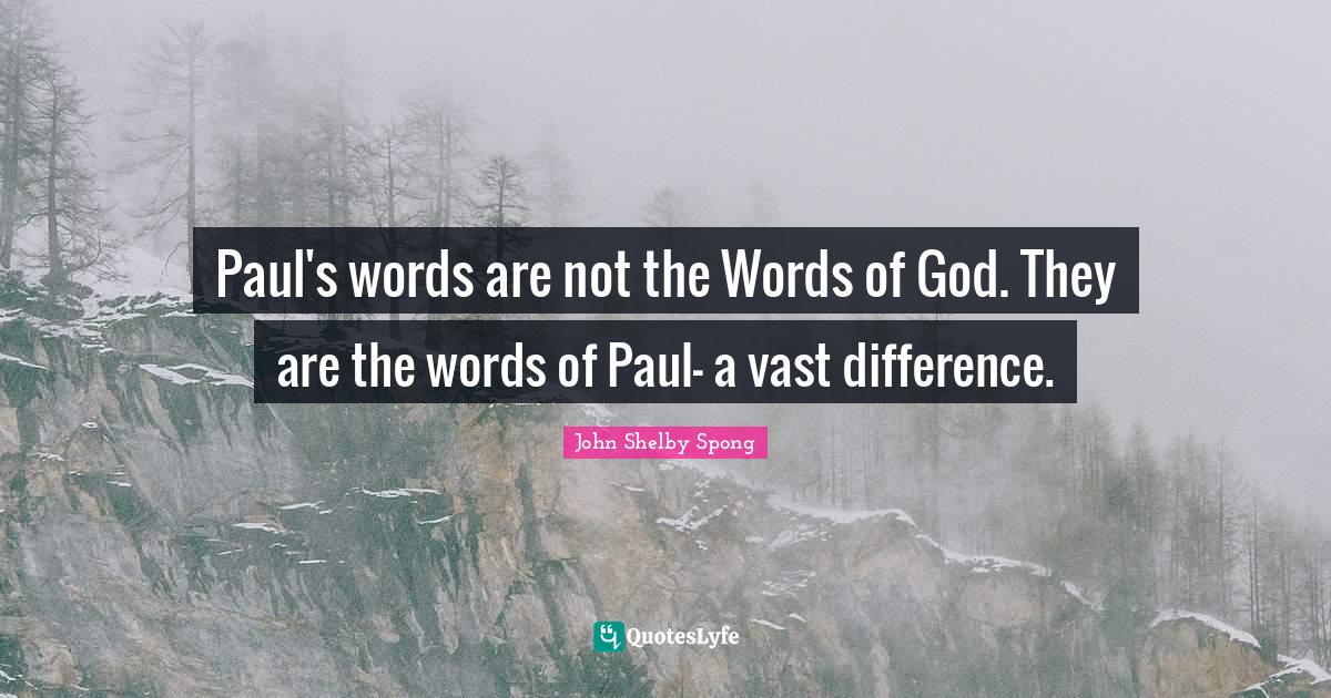 This page presents the quote "Paul's words are not the Words of God. They are the words of Paul- a vast difference.". Author of this quote is John Shelby Spong. This quote is about word of god, historical, differences, god,.