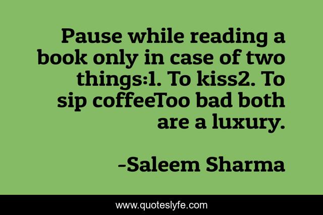 This page presents the quote "Pause while reading a book only in case of two things:1. To kiss2. To sip coffeeToo bad both are a luxury.". Author of this quote is Saleem Sharma. This quote is about funny, coffee, humor, quote, life, kiss, comedy,.