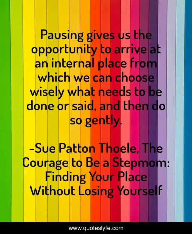 "Sue Patton Thoele, The Courage to Be a Stepmom: Finding Your Place Without Losing Yourself Quotes." Quoteslyfe.com, 2025. Fri. 05 Dec. 2025. <https://www.quoteslyfe.com/quote/Pausing-gives-us-the-opportunity-to-arrive-185357>.