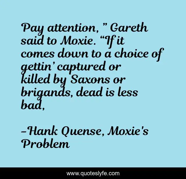 "Hank Quense, Moxie's Problem Quotes." Quoteslyfe.com, 2025. Tue. 09 Dec. 2025. <https://www.quoteslyfe.com/quote/Pay-attention-Gareth-said-to-Moxie-If-212858>.