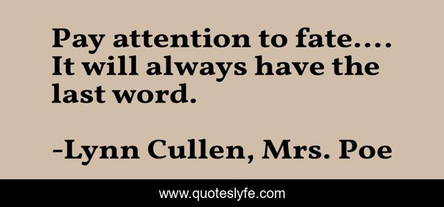 "Lynn Cullen, Mrs. Poe Quotes." Quoteslyfe.com, 2025. Fri. 05 Dec. 2025. <https://www.quoteslyfe.com/quote/Pay-attention-to-fate-It-will-always-153742>.