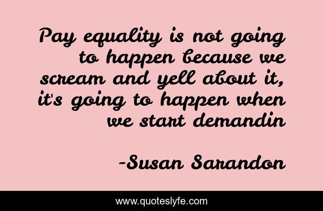 This page presents the quote "Pay equality is not going to happen because we scream and yell about it, it's going to happen when we start demandin". Author of this quote is Susan Sarandon. This quote is about equality, activism, women-s-rights, salaries, equal-pay, women,.