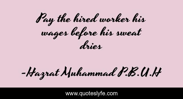 This page presents the quote "Pay the hired worker his wages before his sweat dries". Author of this quote is Hazrat Muhammad P.B.U.H. .