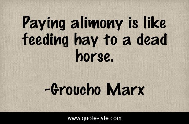 This page presents the quote "Paying alimony is like feeding hay to a dead horse.". Author of this quote is Groucho Marx. This quote is about divorce, comedy, funny,.
