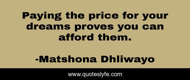 "Matshona Dhliwayo Quotes." Quoteslyfe.com, 2025. Sun. 07 Dec. 2025. <https://www.quoteslyfe.com/quote/Paying-the-price-for-your-dreams-proves-109084>.
