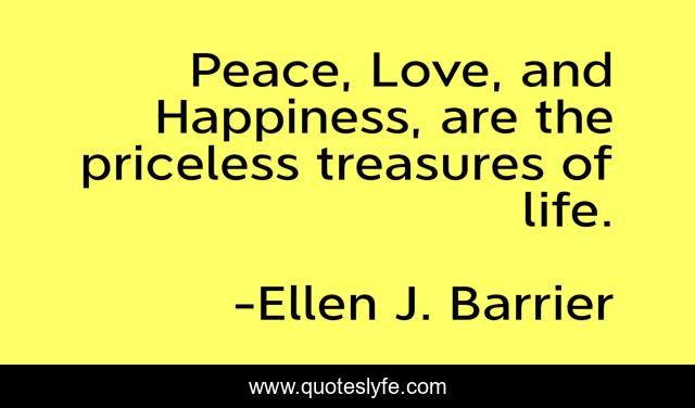 This page presents the quote "Peace, Love, and Happiness, are the priceless treasures of life.". Author of this quote is Ellen J. Barrier. This quote is about love, peace, emotions, feelings, happiness, comforting, expressions, affection, inspiration,.