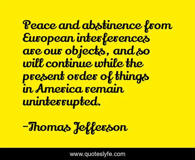 "Thomas Jefferson Quotes." Quoteslyfe.com, 2025. Fri. 05 Dec. 2025. <https://www.quoteslyfe.com/quote/Peace-and-abstinence-from-European-interferences-are-323677>.