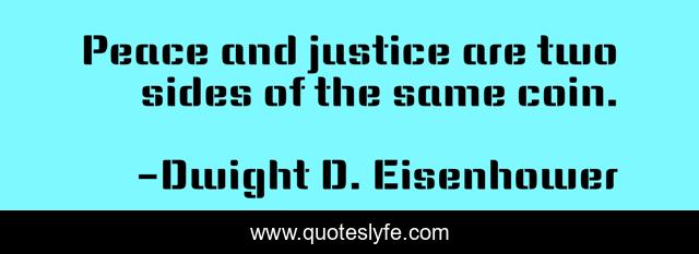This page presents the quote "Peace and justice are two sides of the same coin.". Author of this quote is Dwight D. Eisenhower. This quote is about justice, peace,.