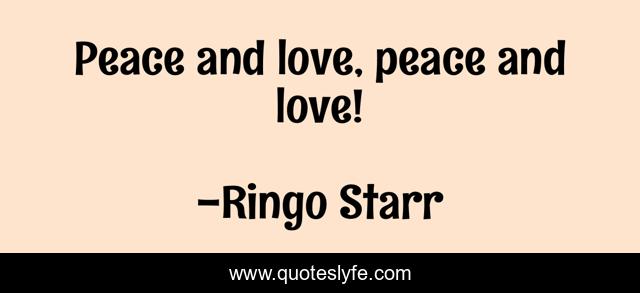 This page presents the quote "Peace and love, peace and love!". Author of this quote is Ringo Starr. This quote is about peace, love, the-beatles, affection,.