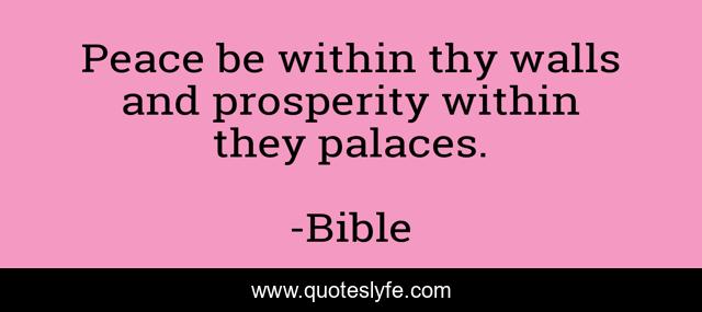 This page presents the quote "Peace be within thy walls and prosperity within they palaces.". Author of this quote is Bible. .