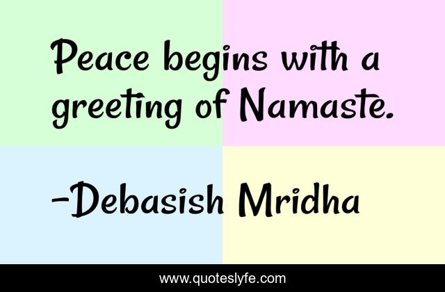 This page presents the quote "Peace begins with a greeting of Namaste.". Author of this quote is Debasish Mridha. This quote is about namaste, peace, philosophy, debasish-mridha, greeting, quotes, inspirational, enthusiasm, debasish-mridha-m-d,.