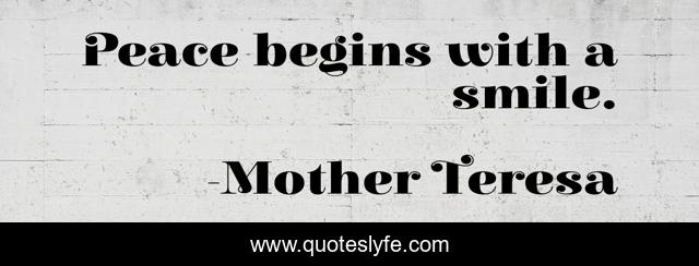 "Mother Teresa Quotes." Quoteslyfe.com, 2025. Sat. 06 Dec. 2025. <https://www.quoteslyfe.com/quote/Peace-begins-with-a-smile-323354>.