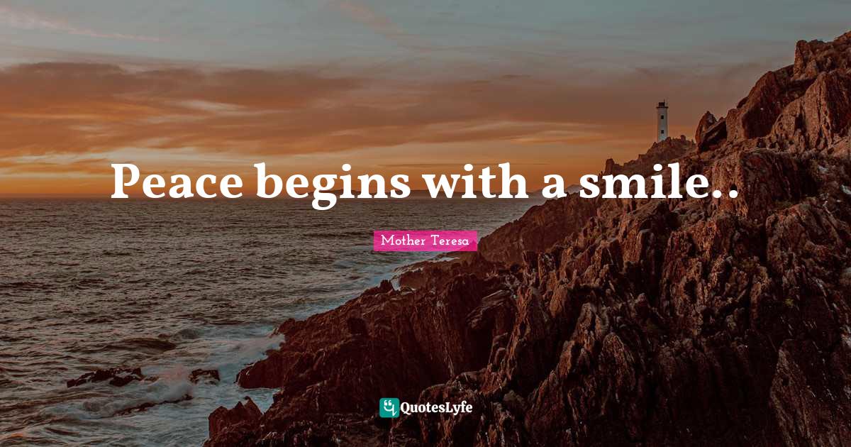 "Mother Teresa Quotes." Quoteslyfe.com, 2026. Tue. 13 Jan. 2026. <https://www.quoteslyfe.com/quote/Peace-begins-with-a-smile-3720>.