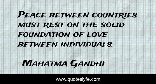 This page presents the quote "Peace between countries must rest on the solid foundation of love between individuals.". Author of this quote is Mahatma Gandhi. This quote is about individuals, love, peace, affection, countries,.