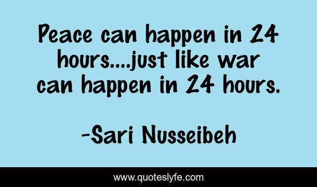 "Sari Nusseibeh Quotes." Quoteslyfe.com, 2025. Mon. 08 Dec. 2025. <https://www.quoteslyfe.com/quote/Peace-can-happen-in-24-hours-just-73151>.