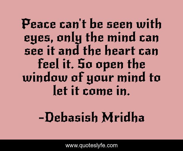 This page presents the quote "Peace can't be seen with eyes, only the mind can see it and the heart can feel it. So open the window of your mind to let it come in.". Author of this quote is Debasish Mridha. This quote is about heart, life, debasish, mridha, peace, mind, window, philosophy,.