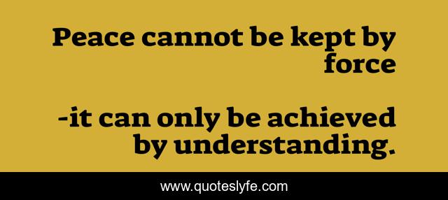 "it can only be achieved by understanding. Quotes." Quoteslyfe.com, 2025. Sat. 06 Dec. 2025. <https://www.quoteslyfe.com/quote/Peace-cannot-be-kept-by-force-73023>.