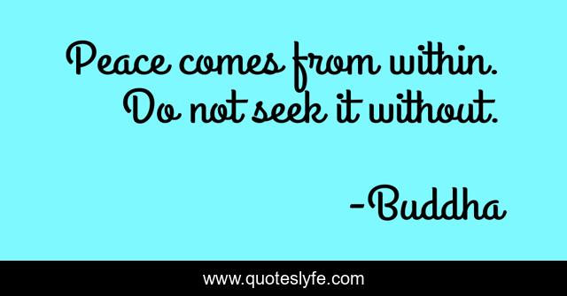 This page presents the quote "Peace comes from within. Do not seek it without.". Author of this quote is Buddha. This quote is about within, seek, without,.
