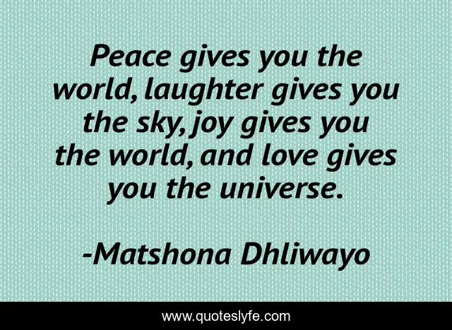 "Matshona Dhliwayo Quotes." Quoteslyfe.com, 2025. Mon. 08 Dec. 2025. <https://www.quoteslyfe.com/quote/Peace-gives-you-the-world-laughter-gives-15319>.