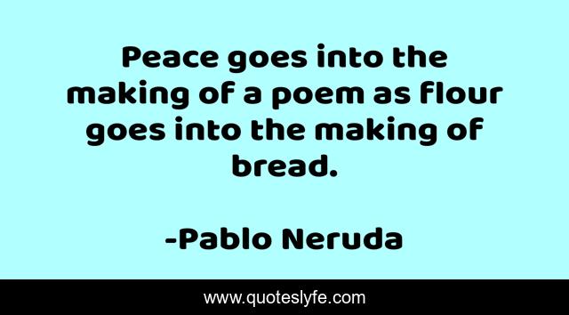 This page presents the quote "Peace goes into the making of a poem as flour goes into the making of bread.". Author of this quote is Pablo Neruda. This quote is about poem, bread, making,.