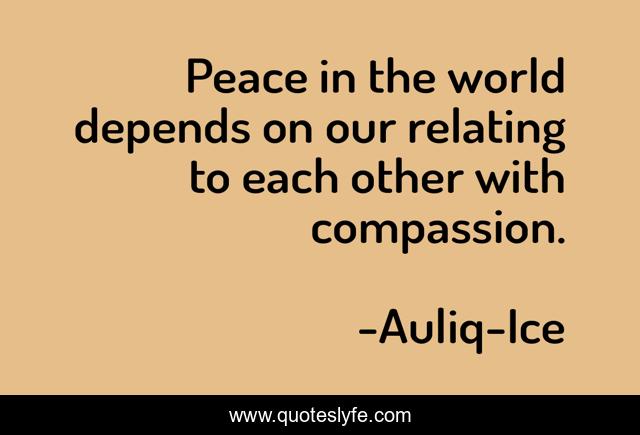This page presents the quote "Peace in the world depends on our relating to each other with compassion.". Author of this quote is Auliq-Ice. This quote is about compassion, unity, peace, forgiveness, happiness,.