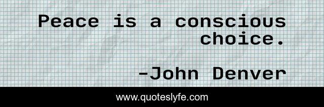 This page presents the quote "Peace is a conscious choice.". Author of this quote is John Denver. This quote is about environmentalism, peace, music,.