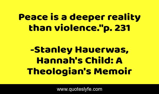 "Stanley Hauerwas, Hannah's Child: A Theologian's Memoir Quotes." Quoteslyfe.com, 2025. Sun. 07 Dec. 2025. <https://www.quoteslyfe.com/quote/Peace-is-a-deeper-reality-than-violence-201812>.