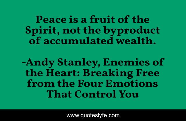 "Andy Stanley, Enemies of the Heart: Breaking Free from the Four Emotions That Control You Quotes." Quoteslyfe.com, 2025. Mon. 08 Dec. 2025. <https://www.quoteslyfe.com/quote/Peace-is-a-fruit-of-the-Spirit-196455>.