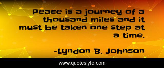 This page presents the quote "Peace is a journey of a thousand miles and it must be taken one step at a time.". Author of this quote is Lyndon B. Johnson. This quote is about step, journey, peace,.
