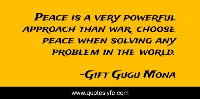 This page presents the quote "Peace is a very powerful approach than war, choose peace when solving any problem in the world.". Author of this quote is Gift Gugu Mona. This quote is about very-powerful-approach, choose-peace, solving-any-problem, peacefulness, peace, world,.